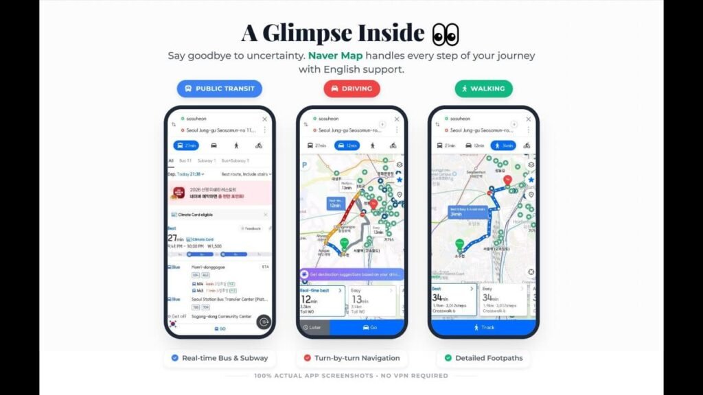 In Korea, Naver Map is the king. It’s the “Digital Sherpa” that will guide you through the tiny alleys of Hanok villages and the complex subway systems.